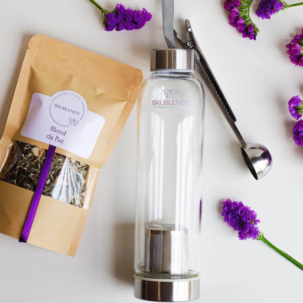 Na parte de baixo de sua garrafa você adicionará o Blend, na parte de cima você insere a água já em fervura, aguarde de 3 a 5 minutos para que ocorra a infusão e já pode degustar seu chá.